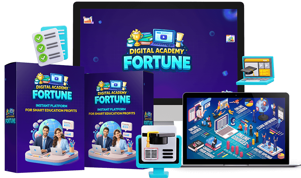 Digital Academy Fortune is a comprehensive, "Done-For-You" (DFY) system designed to let anyone—regardless of technical skill—launch a professional online academy in minutes.