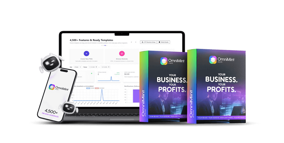 OmniMint AI is an all-in-one, white-label PWA (Progressive Web App) builder specifically designed for the AI age. Unlike traditional no-code builders like Bubble or Glide, which require a steep learning curve, OmniMint AI uses a modular "pick-and-deploy" system.